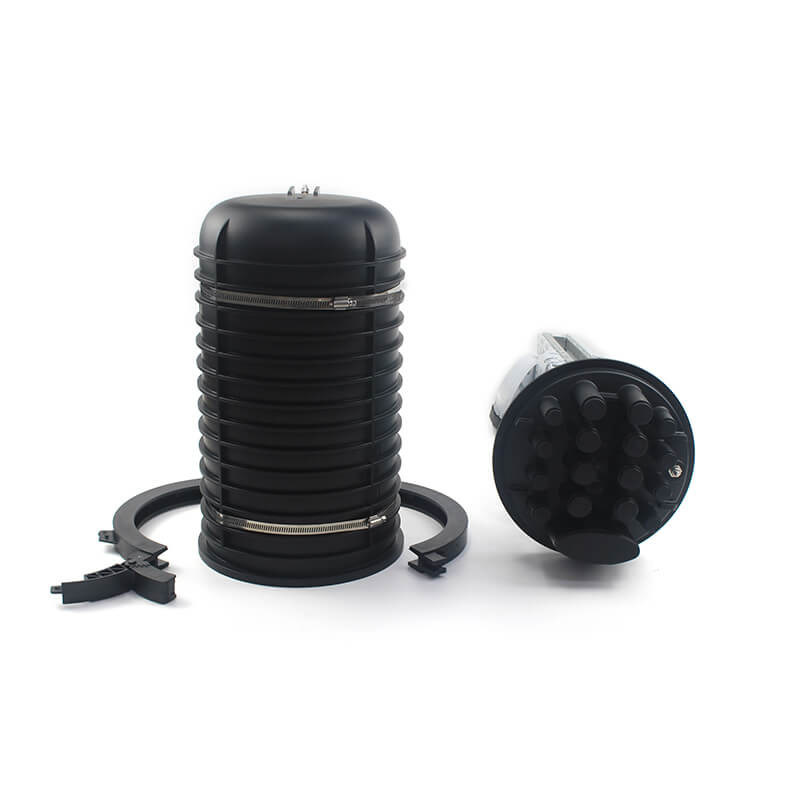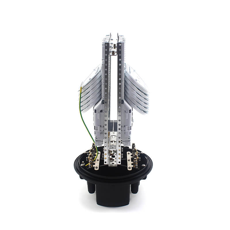 Diseño de cúpula a base; sellado con una abrazadera y un sistema de anillos O. Con dos tipos de bandejas opcionales, puede tener bisagras para acceder a cualquier empalme, sin molestar a otras bandejas;fácil de empaquetar varias veces. Con dispositivo de conexión a tierra de protección contra rayos, se puede aplicar en la parte superior, el poste / montaje en la pared o enterrado directamente.