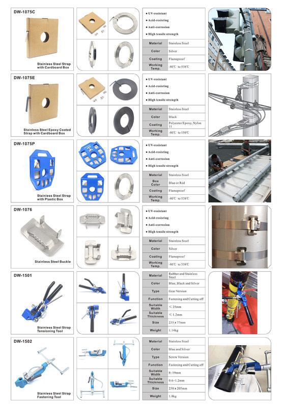 Nombre del producto: correa de acero inoxidable Clasificación de fuego: Ininflamable