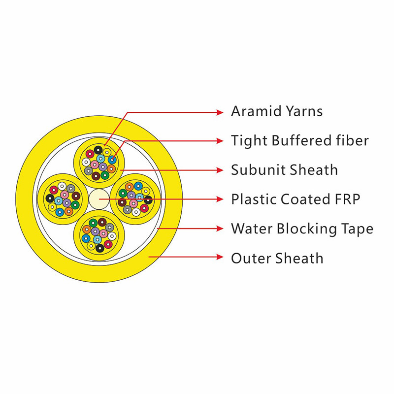 1.1 Cada subcable contiene hilados de aramida, buen rendimiento de flexión, sin tubo suelto, fácil de limpiar, fácil de construir y conectar.