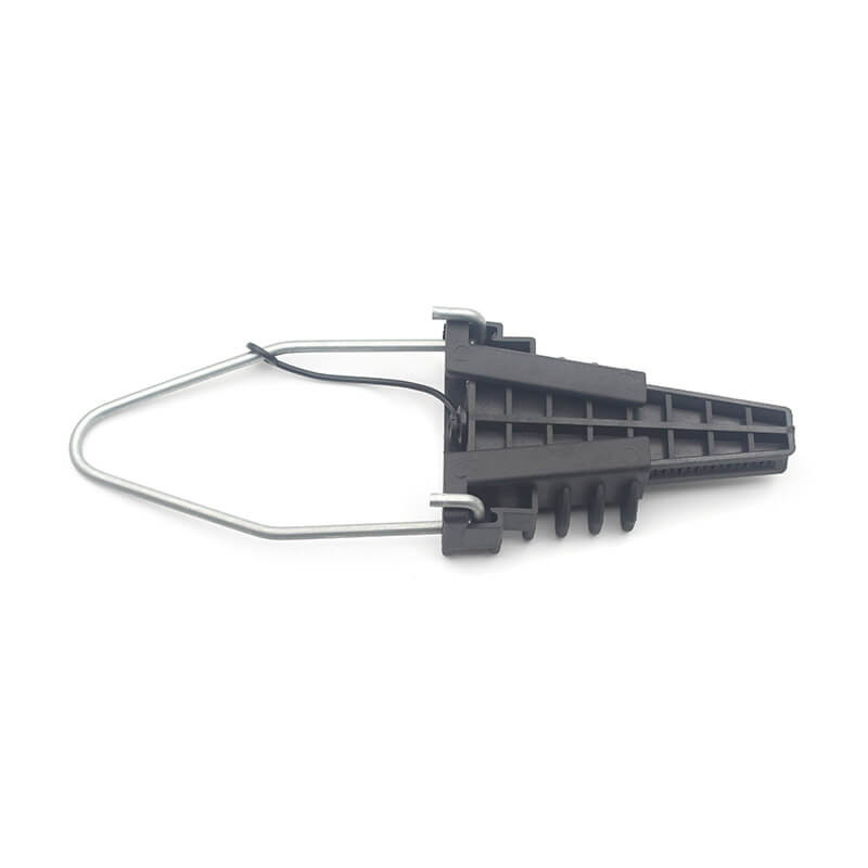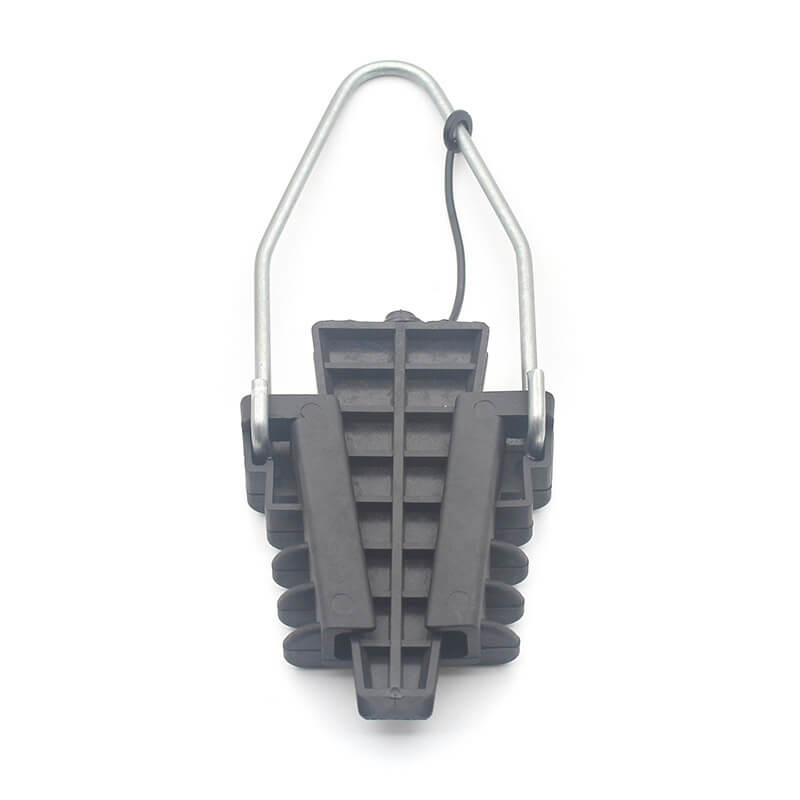 La abrazadera de anclaje está diseñada para anclar las líneas LV ABC con un mensajero neutro aislado.La fijación flexible está equipada con una silla aislante móvil y las dos mangas se comprimen en los extremos y se bloquean en el cuerpo de la abrazaderaUn par de cuñas sujetan el cable automáticamente dentro del cuerpo cónico. La instalación no requiere herramientas específicas y el tiempo de operación se reduce drásticamente.
