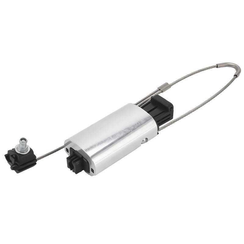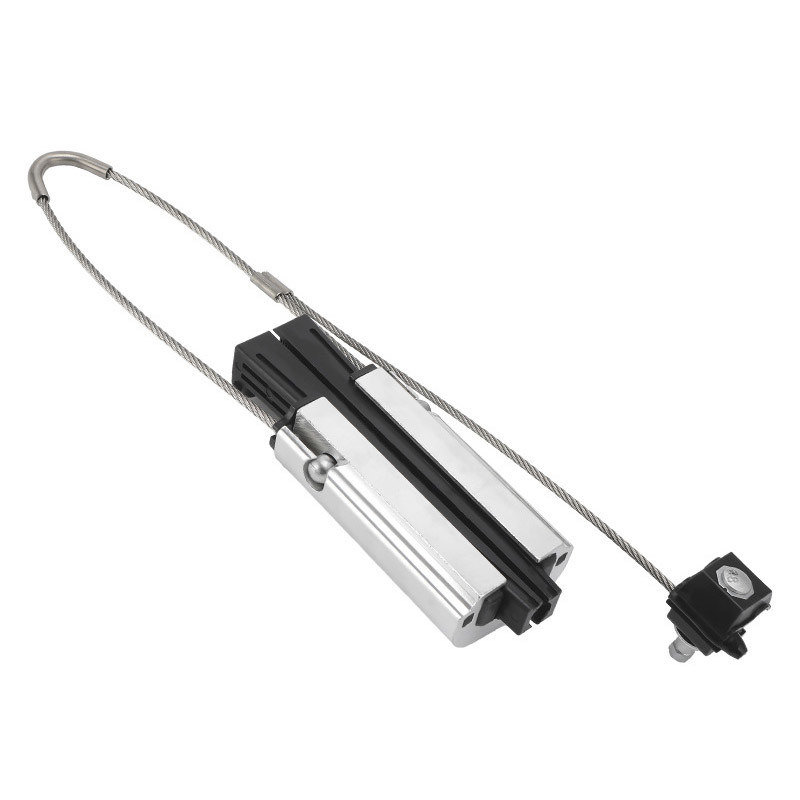 La abrazadera de punto muerto se utiliza para líneas LV-ABC con mensajero neutro aislado.La abrazadera se compone de un cuerpo fundido de aleación de aluminio y cuñas de plástico autoajustables que aprietan el conductor sin daños de aislamientoTodas las partes de la abrazadera son resistentes a la corrosión, los efectos ambientales y la radiación UV.