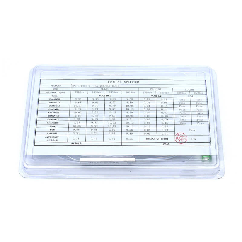 El divisor PLC se basa en la tecnología PLC (Planar Lightwave Circuit) y es adecuado para aplicaciones de alta densidad.Es posible que la potencia de transmisión en cada puerto de salida del divisor sea la misma, simplificando la arquitectura de la red y reduciendo los gastos, permitiendo que una única interfaz PON sea compartida por múltiples abonados,Los divisores ópticos han desempeñado un papel esencial en las redes ópticas pasivasEl divisor de fibra óptica divide la luz de fibra óptica en numerosas secciones en una proporción específica.El divisor de PLC tiene una distorsión mínima durante el uso debido a su forma pequeña y doblar cables insensibles, garantizando una transmisión óptica estable.